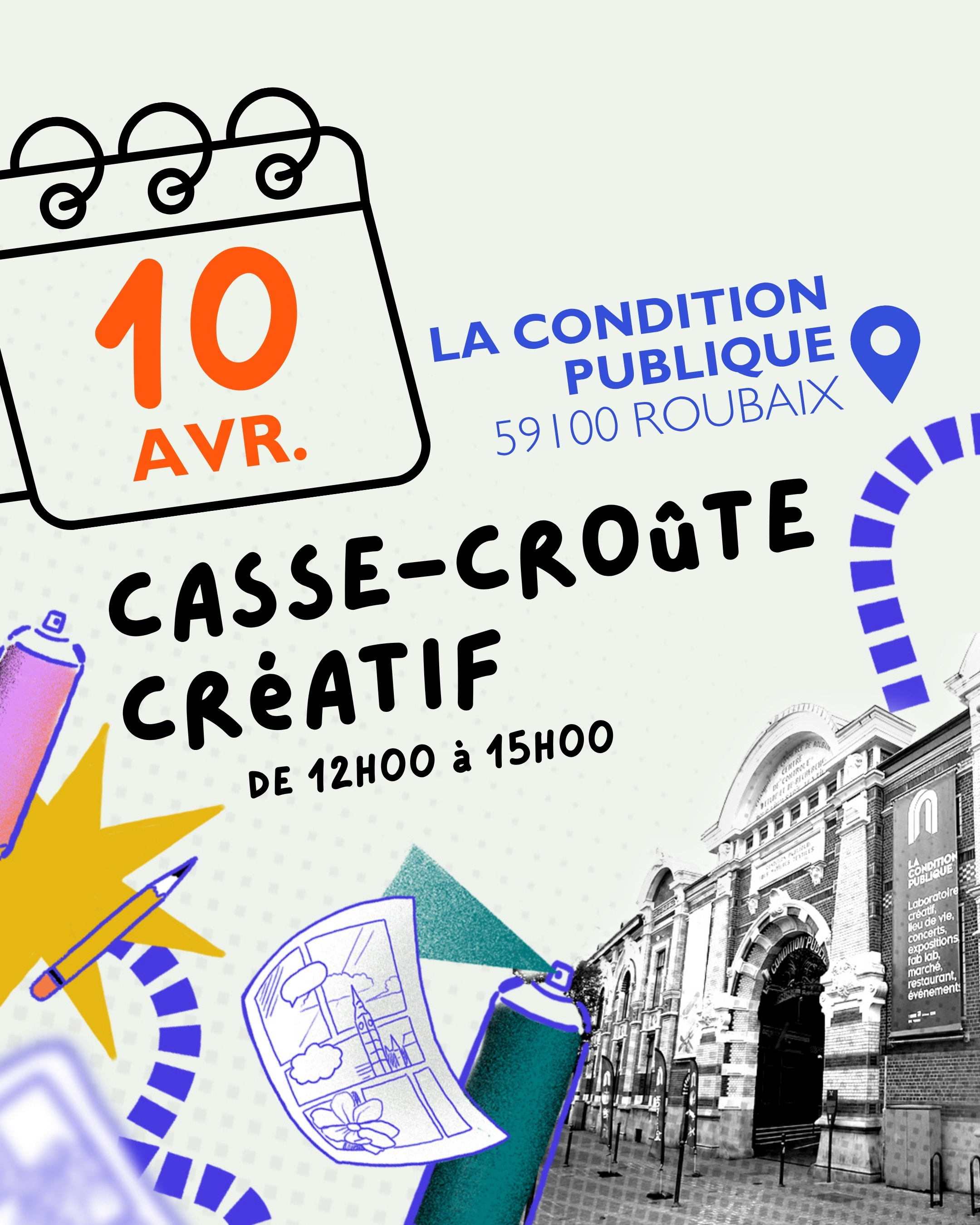 - Vendredi 10 avril 12:00-15:00 : Casse-croûte créatif - La Condition Publique Roubaix