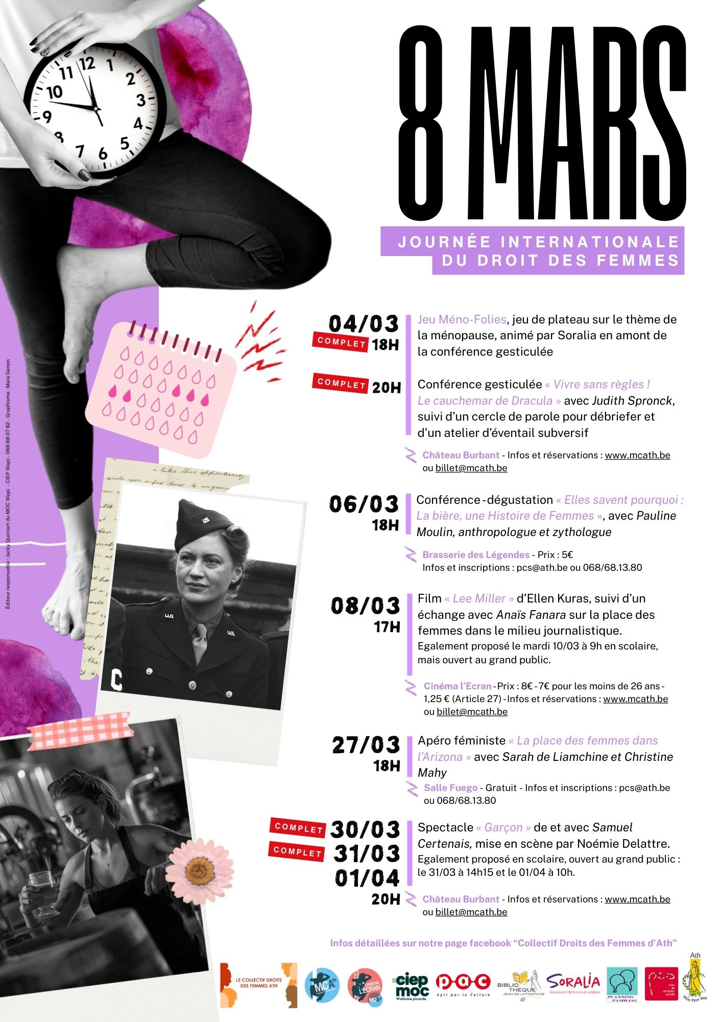 Du 4 mars au 1er avril, le Collectif Droits des Femmes de Ath vous propose une belle série de rendez-vous : jeu, conférence gesticulée, ciné-débat, apéro féministe, conférence-dégustation et spectacles.