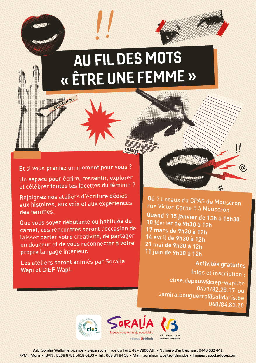 - Mardi 10 février 09:30-12:00 : Au fil des mots : "Être une femme"